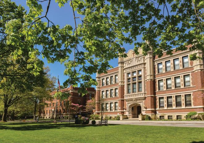 The campus includes several buildings with over a hundred-year history. Students can use a modern audience, equipped with interactive technology, libraries, computer and administrative information centers in the educational buildings. Wireless internet is available in all area. The school has a music studio, the center of art. Sports infrastructure is represented by sports grounds (open and closed), fitness center, gymnasium, tennis courts, fields for softball, football and baseball.