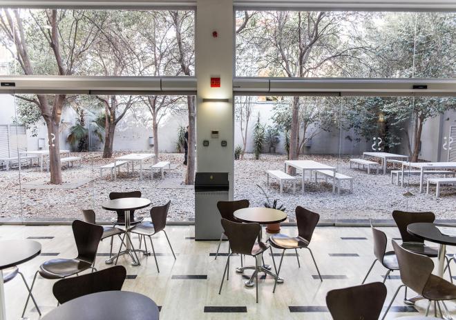 Students can always use a huge recreation area with free access to Wi-Fi and more than 20 computers, separated by a glass wall from a cozy patio, where students like to gather after classes and during breaks. There are vending machines selling drinks and light snacks throughout the school. Students can park their cars and bicycles.