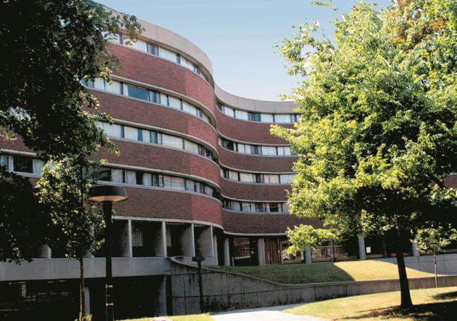 - Single standard rooms with a shared bathroom in a residence in the central part of the campus