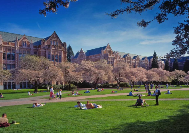 - The campus at the University of Washington is very well built (both for learning and for living). On its territory there are not only buildings for occupations and dormitories, but also an extensive recreation area. It includes a complex of galleries, cafes, squares and many simply wonderful places.