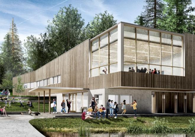 The university campus covers an area of 32 acres in a pine forest, where the following are located: